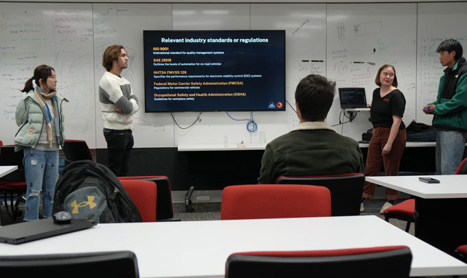 Capstone is a partnership between the School of Engineering and a host of industry clients including tech start-ups, engineering firms, and research and development teams. The industry professionals present potential projects to Capstone students on ‘pitch day’, after which the students self-select into teams.